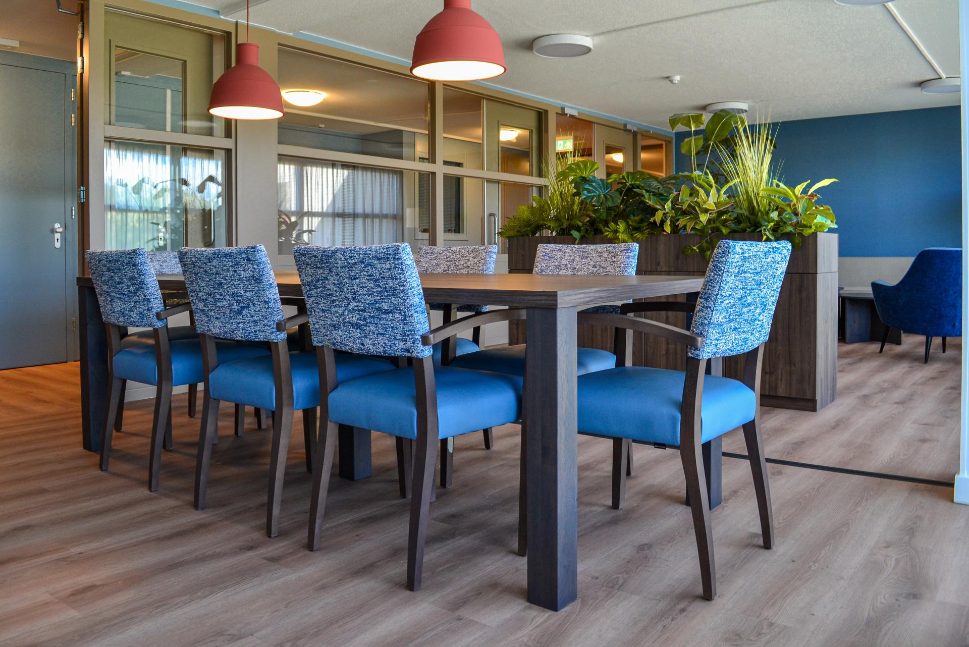 Bij woonzorglocatie Pleyade Waalstaete in Arnhem wonen ouderen zelfstandig, met ondersteuning waar nodig. Deze omgeving vraagt om rust, herkenbare kleuren en een huiselijke sfeer. Wij mochten hier de inrichting verzorgen van diverse huiskamers, gangen en het centrale atrium. Alle elementen zijn samengebracht in een harmonieus totaalconcept dat comfort en herkenbaarheid uitstraalt. Het centrale atrium |