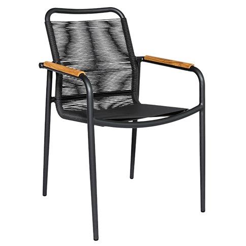 De Amazone stoel heeft een moderne uitstraling door het stalen frame in combinatie met de teak armleuningen en een gevlochten zitting. De met kunststof gevlochten zitting en rugleuning hebben een hoge veerkracht en daardoor een hoog zit comfort.