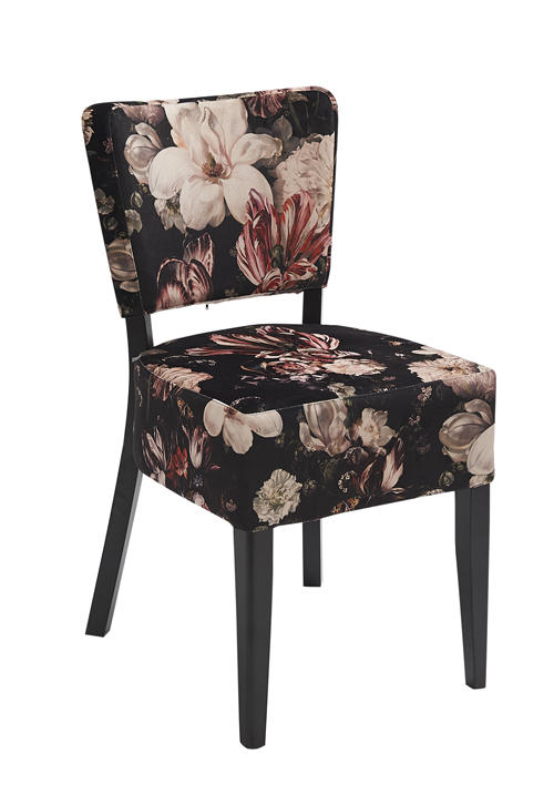 De Ambiance stoel heeft een houten frame en is bekleed met een prachtige stof. De dikke zitting in combinatie met de stoffering zorgen voor optimaal zitcomfort.