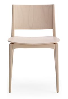 In de Blazer collectie wordt esthetiek bepaald door de constructieve kenmerken. In de stoelen en krukken geven de licht ingesprongen voorste tresso, de verhoogde zitting en toelopende poten geven een idee van lichtheid en elegantie.