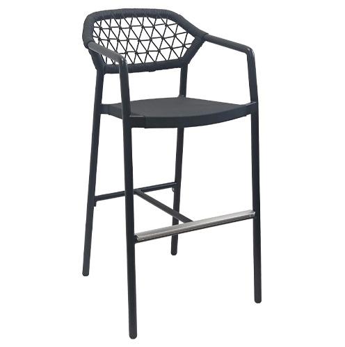 De Demi S Black is een eigentijdse barkruk met een open, gevlochten rugleuning die direct in het oog springt. Het zwarte metalen frame zorgt voor een strakke en robuuste uitstraling, terwijl de vormgeving luchtig en toegankelijk blijft. Deze kruk combineert comfort met karakter en is zowel binnen als buiten een echte blikvanger. Ideaal voor horeca, thuis aan een keukeneiland of in een moderne buitenruimte.