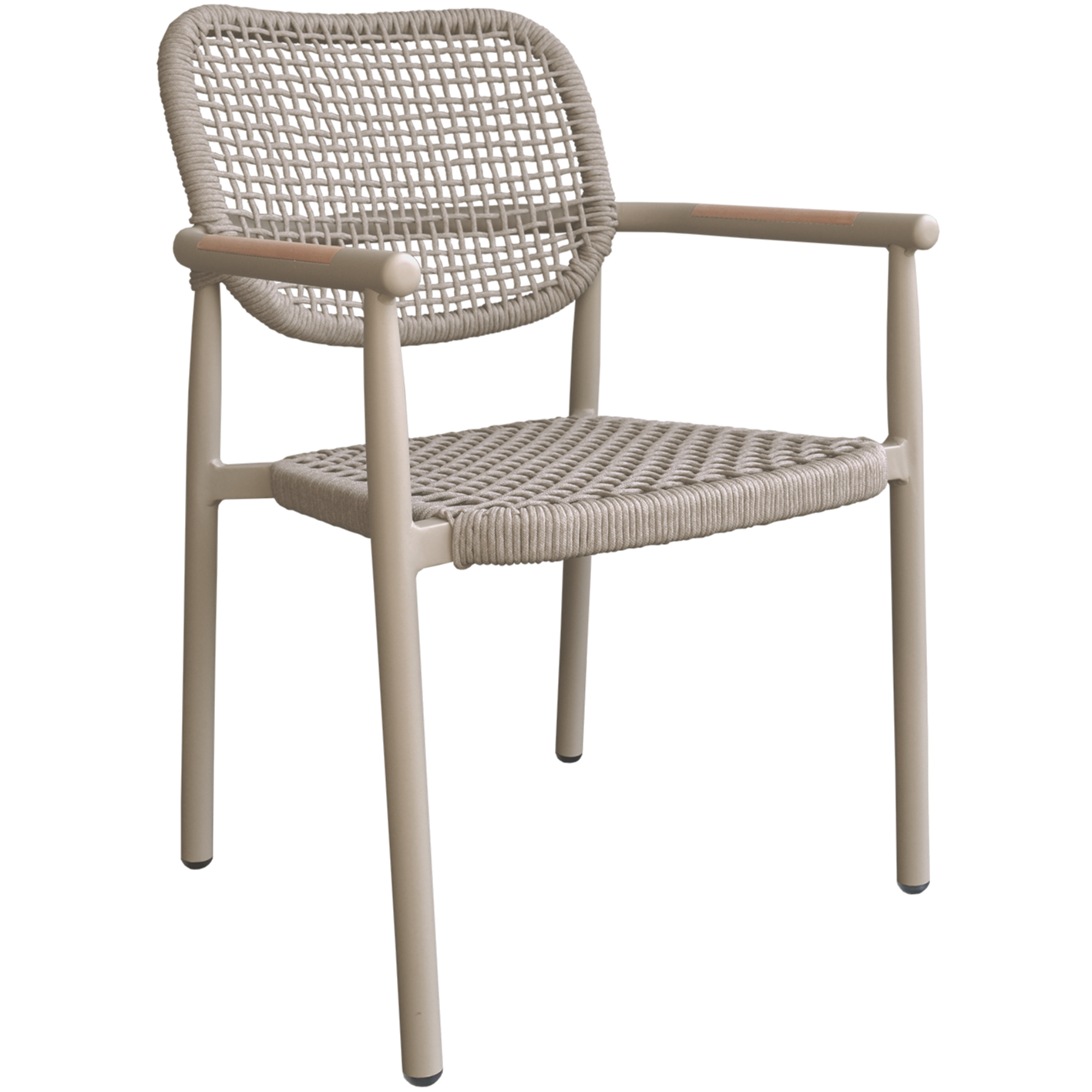 De Donald A terrasstoel is een stapelbare armstoel met geïntegreerde teak armleggers. Door zijn tijdloze uitstraling is de Donald A makkelijk te combineren en in te zetten bij verschillende interieurstijlen. De terrasstoel is stapelbaar en licht in gewicht waardoor hij makkelijk te verplaatsen en op te bergen is. Daarnaast heeft de stoel een extra brede zitting.