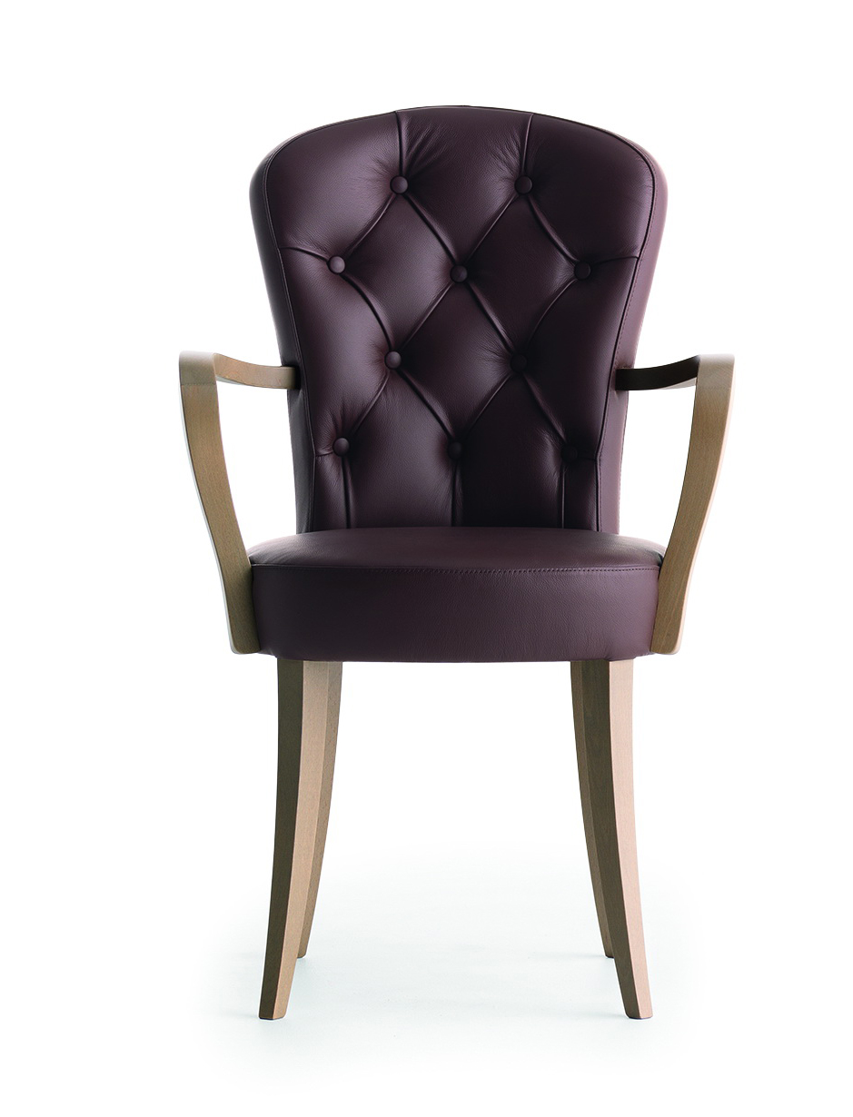 De Euforia stoel heeft een massief houten frame en een volledig gestoffeerde zitting en rugleuning. De voorzijde van de rug heeft een gecapitonneerde bekleding. De buitenkant van de rug zonder knoopdetail maar met ritsdetail.