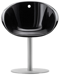 De Gliss collectie heeft een knusse en ergonomische vorm, geïnspireerd op de iconische stoelen uit de jaren '50, met een opvallend gat in de schaal. De collectie valt op door zijn comfort en functionaliteit, dankzij de bochtige armleuningen die het lichaam omarmen en het gebruiksgemak. De fauteuil heeft een vijfsteronderstel van spuitgietaluminium met wielen.