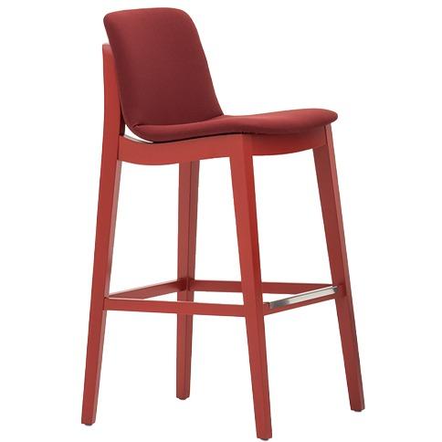 De Light barkruk bestaat uit een massief houten frame gecombineerd met een gestoffeerde zitting en rugleuning. Door de dikke schuimlaag onder de stoffering heeft de stoel een hoog zitcomfort. Door de zitting en het onderstel in dezelfde kleur te maken heeft de stoel een jeugdige en dynamische uitstraling.