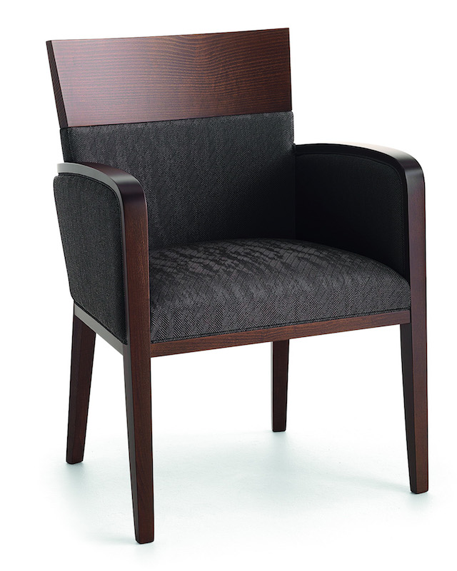 De Logica 00932 stoel heeft een massief houten frame met een volledig gestoffeerde zitting en rugleuning. Het bovenste deel van de rugleuning is gemaakt van massief hout. De stoel heeft biezen op de armleuningen en op de voorkant van de zitting