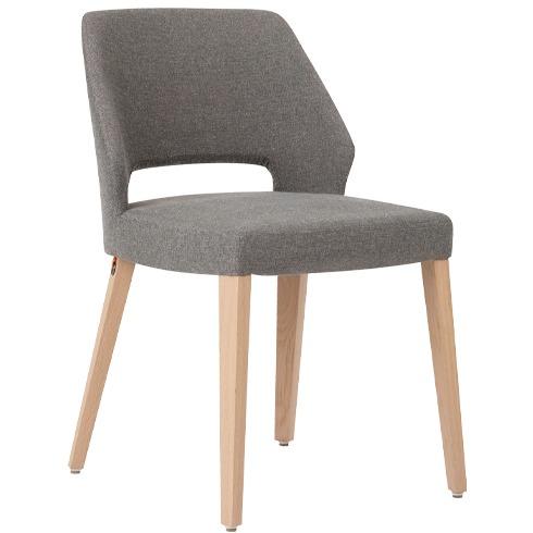 De Lucia stoel is vervaardigd met een stevige beukenhouten structuur en een comfortabele gestoffeerde zitting. Deze stoelen zijn gemakkelijk te gebruiken dankzij de handige uitsparing in de rugleuning. De serie biedt zowel stoelen met als zonder armleuningen.