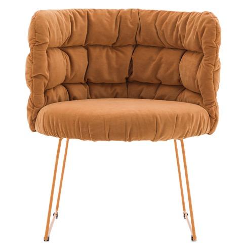 De gestoffeerde Maja stoel laat zich kenmerken door de typische stoffering op de rugleuning. De gesmokte stoffering geeft meteen een hele knusse sfeer. Daarnaast is de Maja stoel verkrijgbaar in drie soorten frame opties.