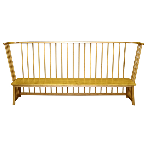 De Mette bank is gemaakt van massief hout, de opvouw is volledig gelakt en afgewerkt in naturel. De zitting heeft een orginele vorm van golven en de rugleuning is gemaakt van houtenbalken.