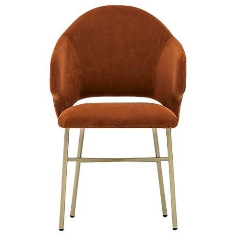 De Niki armstoel heeft een metalen frame en een multiplex zitting en rugleuning. De stoel is volledig gestoffeerd op het frame.