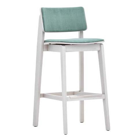 De Offset 02883 barkruk heeft een massief houten frame met een multiplex zitting en rugleuning. De zitting en de voorkant van de rug zijn gestoffeerd. De voetsteun beschikt over een geborsteld RVS stootplaat.