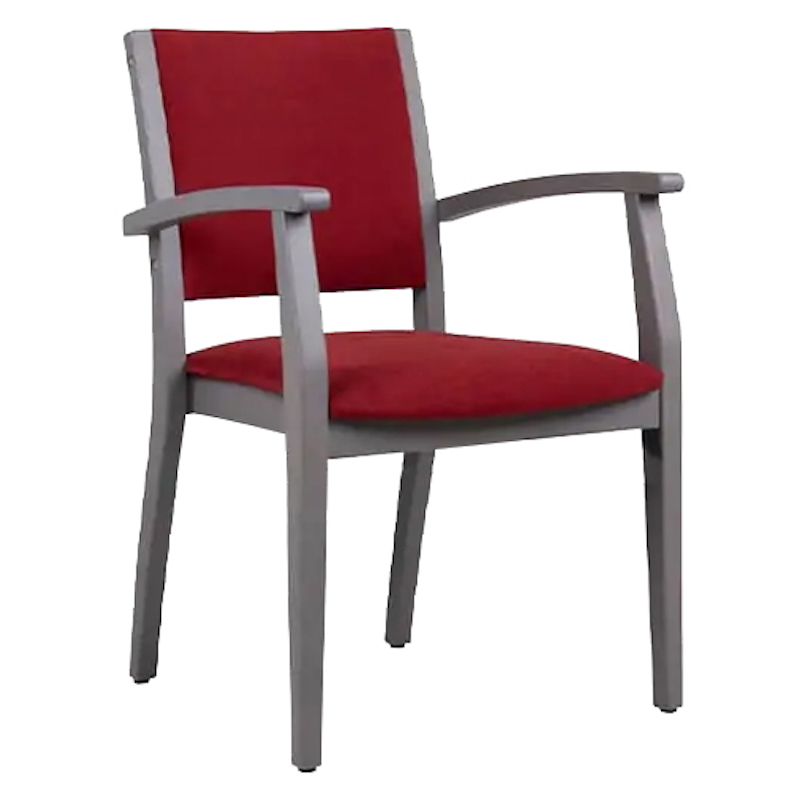 De Port A zorgstoel heeft een stevige en stabiele stand met haar beukenframe en de beste ergonomie. De armleuning is licht gebogen en heeft aan de voorkant een afgeronde knop. De bekleding un de rug en zitting is comfortabel en biedt een goed zitcomfort voor lang zitten.