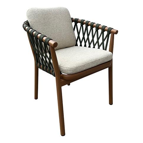 Het klassieke design met de zachte, ronde vormen geeft de Portico terrasstoel een luxe uitstraling. De rug- en armleuning is voorzien van een elegant gevlochten patroon en past perfect op elk terras!