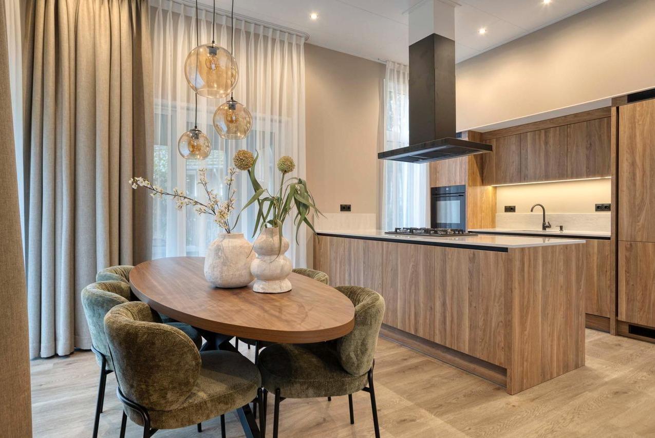 Ook buiten is dezelfde lijn doorgetrokken. Het terrasmeubilair, bestaande uit de Soho-tafel met keramisch blad en Donald A-terrasstoelen in antraciet, sluit perfect aan bij het donkere hout en de zwarte accenten van het exterieur. Zo ontstaat een samenhangend geheel waarin binnen en buiten elkaar versterken.